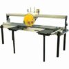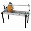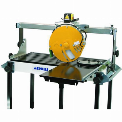 Achilli AMS 100 Bench Tile Saw cutting length up to 40″The Achilli AMS Series of Saws are top of the line saws for all materials. Granite, Marble, Stone, Porcelain, Ceramic, Terracotta, Concrete, Glass, and any other sheet goods. These tile and stone saws will literally last 15-20 years!The Achilli AMS stone and tile saws are made with in Italy with premium quality materials.The AMS Stone and Tile Wet Saws come with a strong 3 HP motor for cutting any material with ease.The water tank reservoir with recycling pump feeds water from the saw back up through the blade housing that feeds water to the diamond blade from both sides to keep the blade super cool.The AMS Stone and Tile Wet Saws offers a Plunge cut head.The AMS Stone and Tile Wet Saws come with a soft start on/off button next to the blade.The AMS Stone and Tile Wet Saws tilt with the entire beam to guarantee accuracy of miter cutting.The AMS offers an optional side extension table (pictured but is not included with the saw)AMS Features:40??? Length of cut??? Efficient monorail design??? 3 HP motor??? Power requirements: single-phase, 230v a.c., 2 KW, 13 amps, 60 Hz??? Optional Side extension table??? 12??? blade capacity??? Water recycling system??? 45?? manual bevel adjustment??? 1″ Blade Arbor